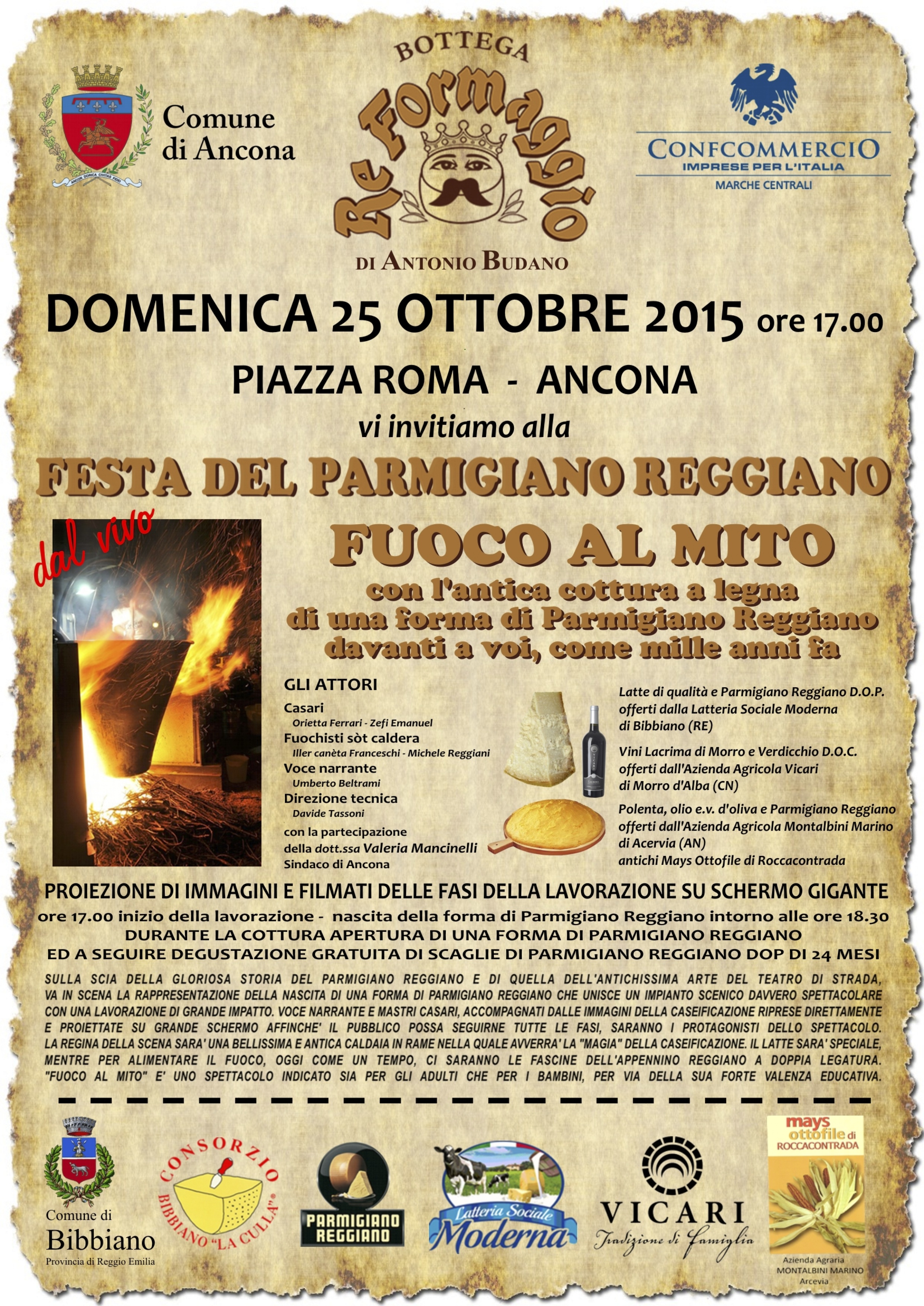 Festa del Parmigiano Reggiano ad Ancona in Piazza Roma domenica 25 ottobre.